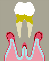 歯の周りには歯肉と骨がありますが、歯垢や歯石がついた歯を放っておくと、歯の周りの歯肉が炎症を起し、次第に歯を支えている骨まで減ってしまいます。